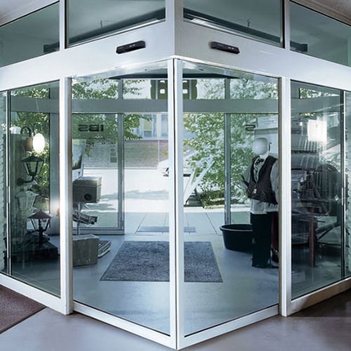 Automatic angle doors naturally guide visitors into your building and split foot traffic efficiently — ideal for busy commercial environments.